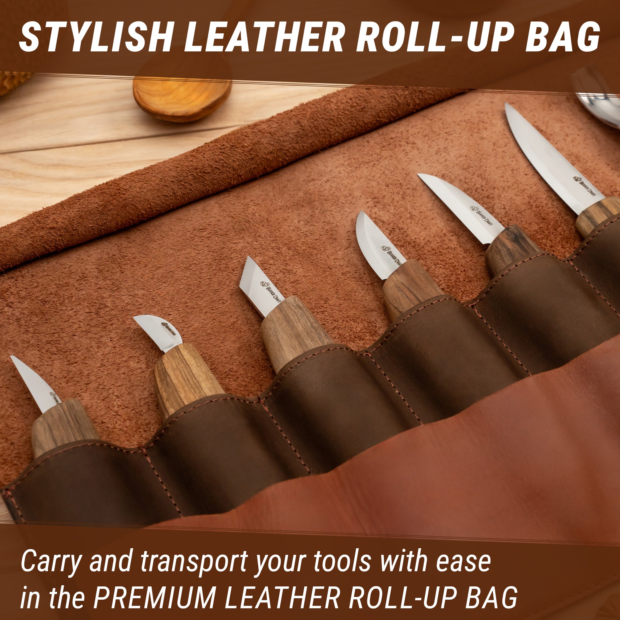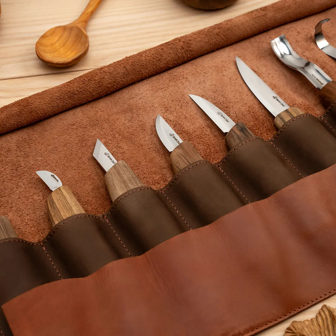 The combination of materials and the overall ergonomics of the knives ensure easy and safe woodcarving over long periods of work. BeaverCraft S18X whittling kit comes with a stylish and comfortable tool roll made of high-quality genuine leather. Everything is designed for the convenience and safety of you and your tools.