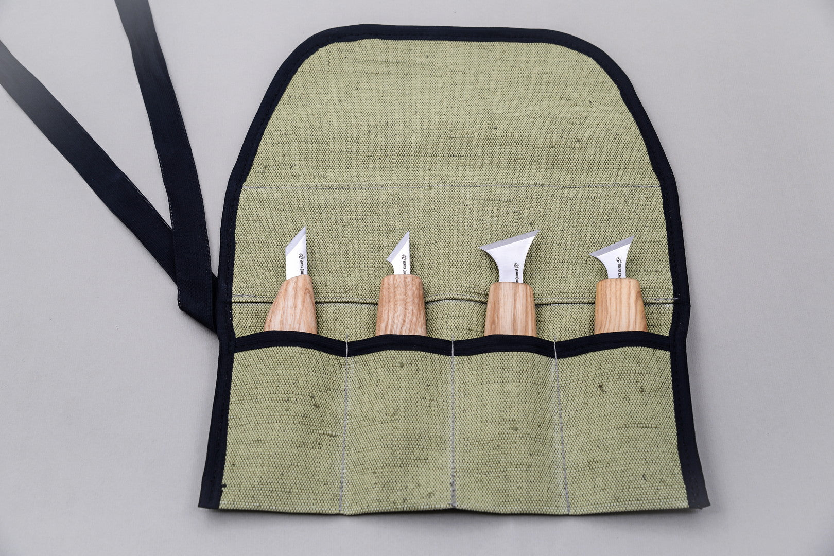Ce coffret polyvalent de couteaux saura accomplir efficacement toute tâche et tout dessin de sculpture : les outils sont adaptés pour couper, enlever de petits éclats et sculpter divers motifs géométriques dans le bois. Les couteaux de ce coffret se distinguent par leur design sobre et les matériaux de première qualité utilisés pour leur fabrication. Ce sont des couteaux d’une netteté rasoir et bien équilibrés, qui tiennent confortablement en main et procurent un réel plaisir lors de la sculpture. Tout est soigneusement pensé et rangé dans un rouleau à outils en toile pratique et solide.