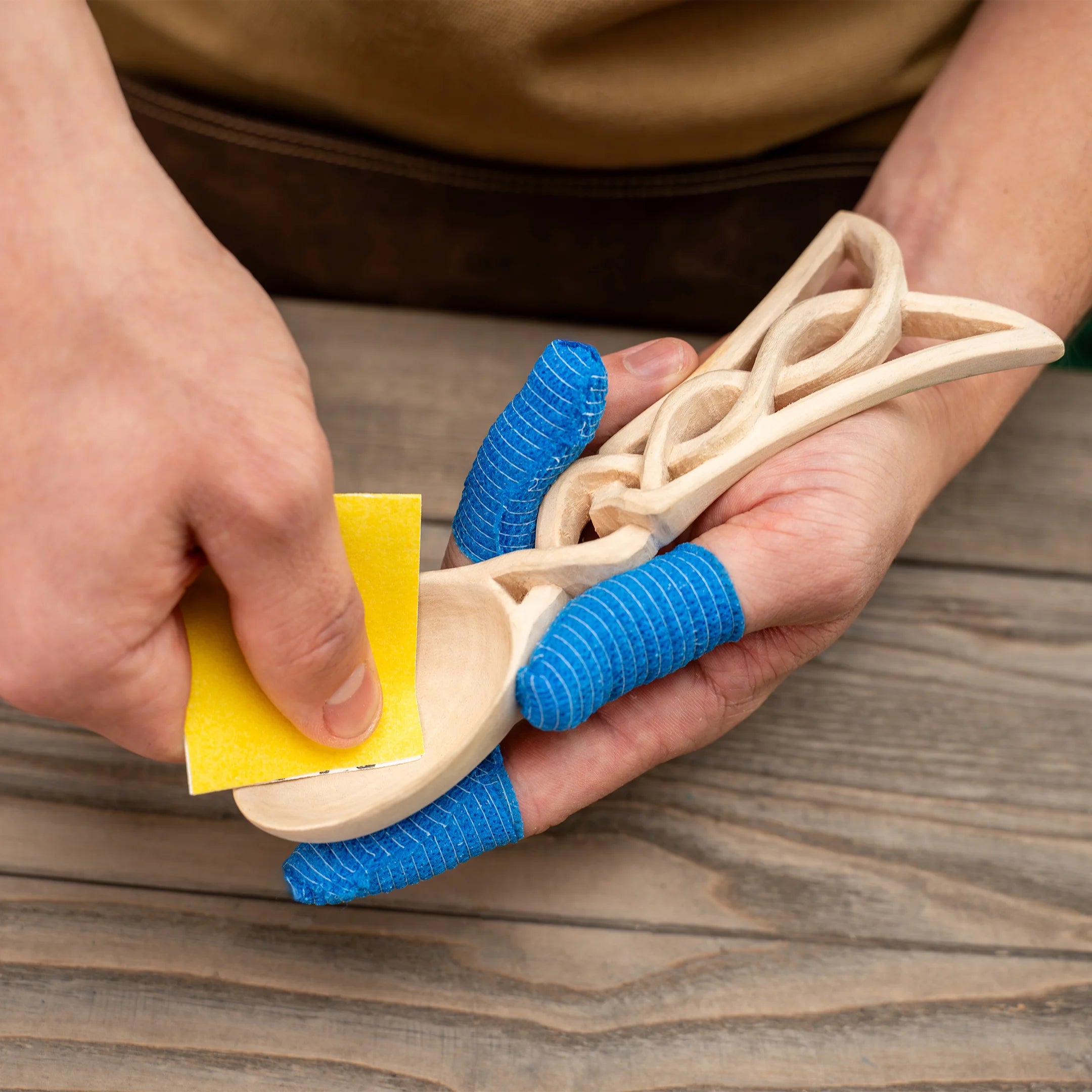 This thoughtfully curated craft kit provides two carving knives — a whittling knife for shaping and a spoon carving knife for hollowing — a pre-cut basswood spoon blank, a leather strop with polishing compound to maintain your blades, cut-resistant tape, and more. It also includes a detailed how-to guide and a step-by-step video tutorial to walk you through every stage.