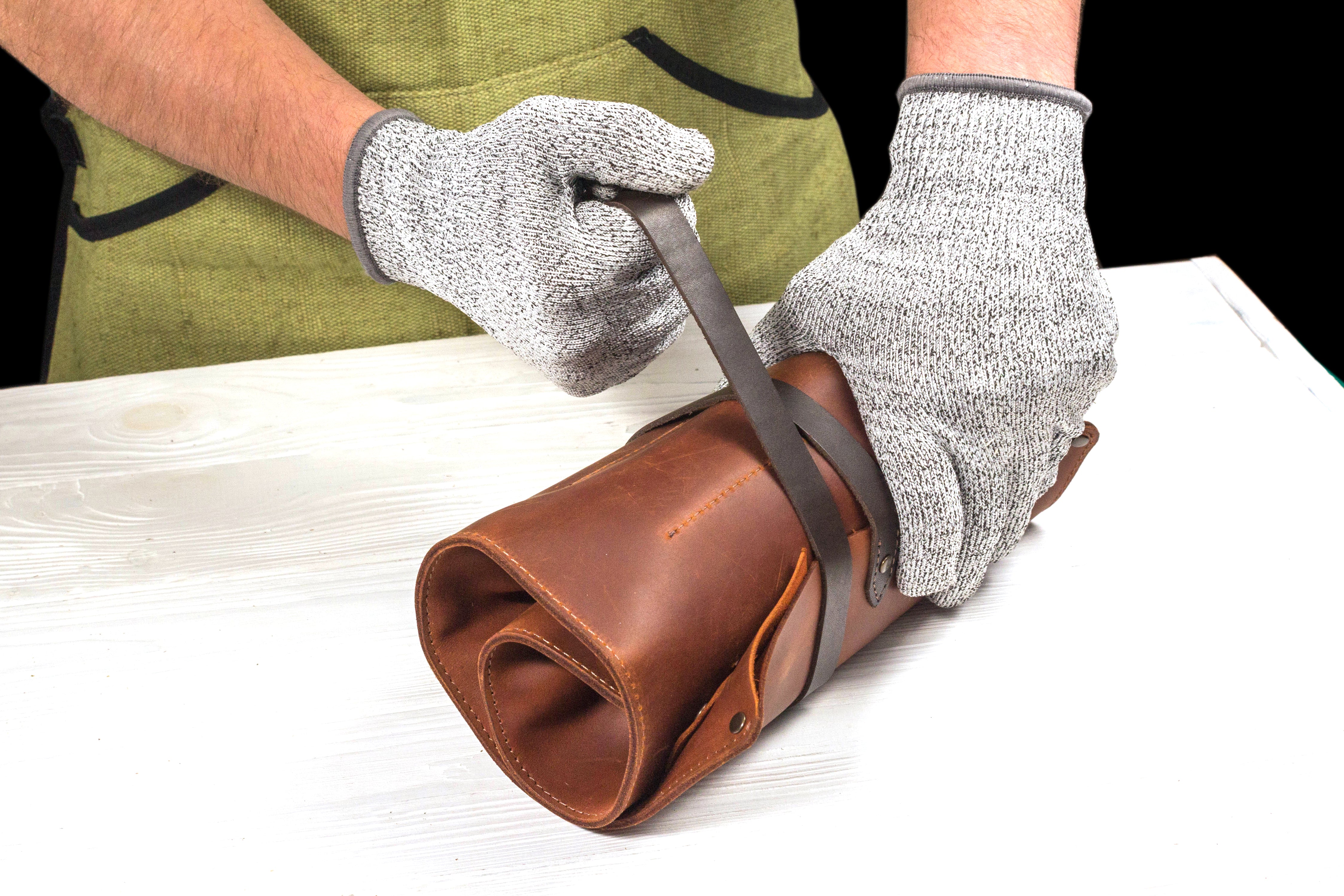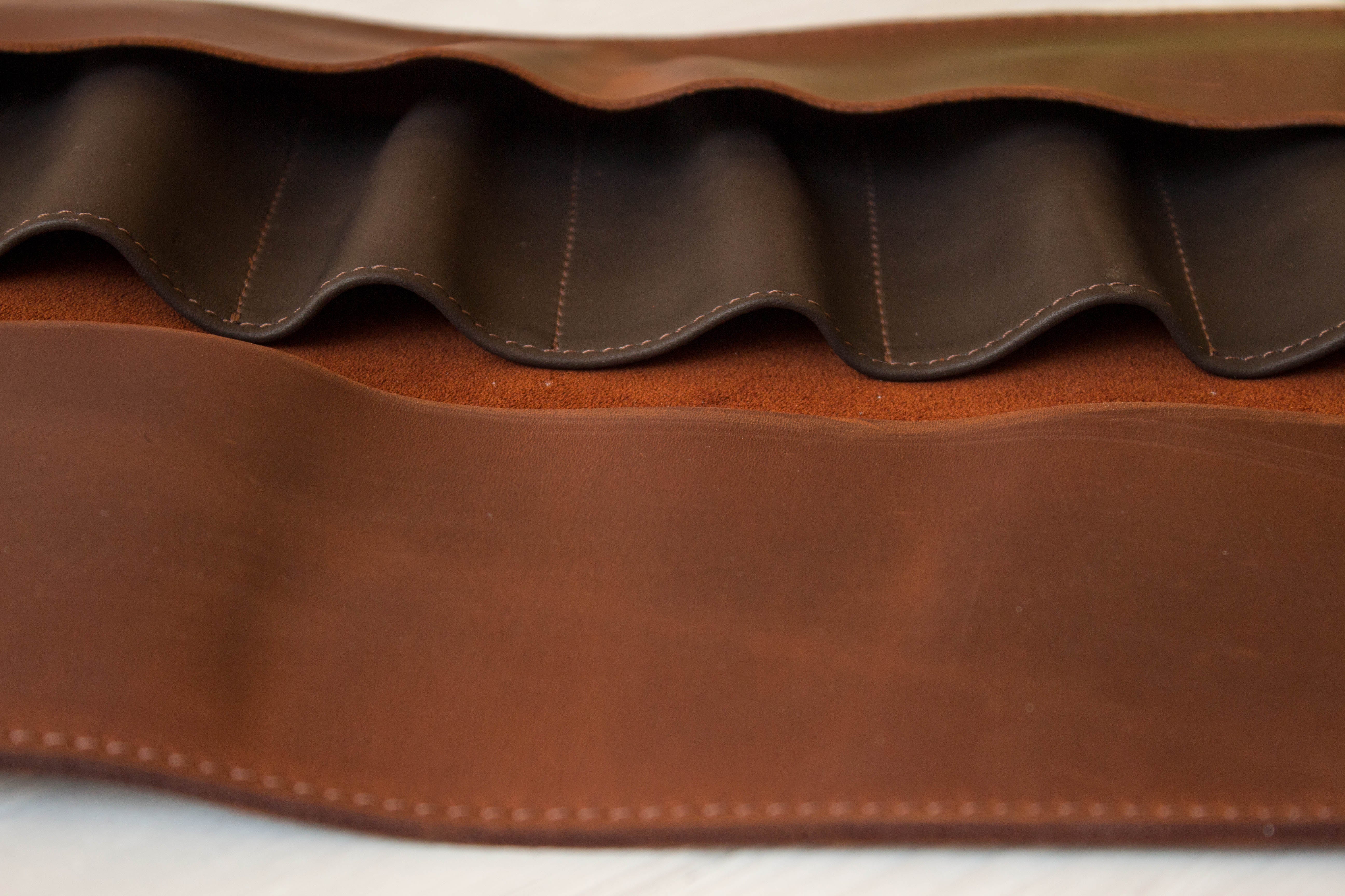 Tool storage is made of genuine leather and sewn with strong thread. The leather is pleasant to the touch and durable, so your tools will remain as protected as possible.