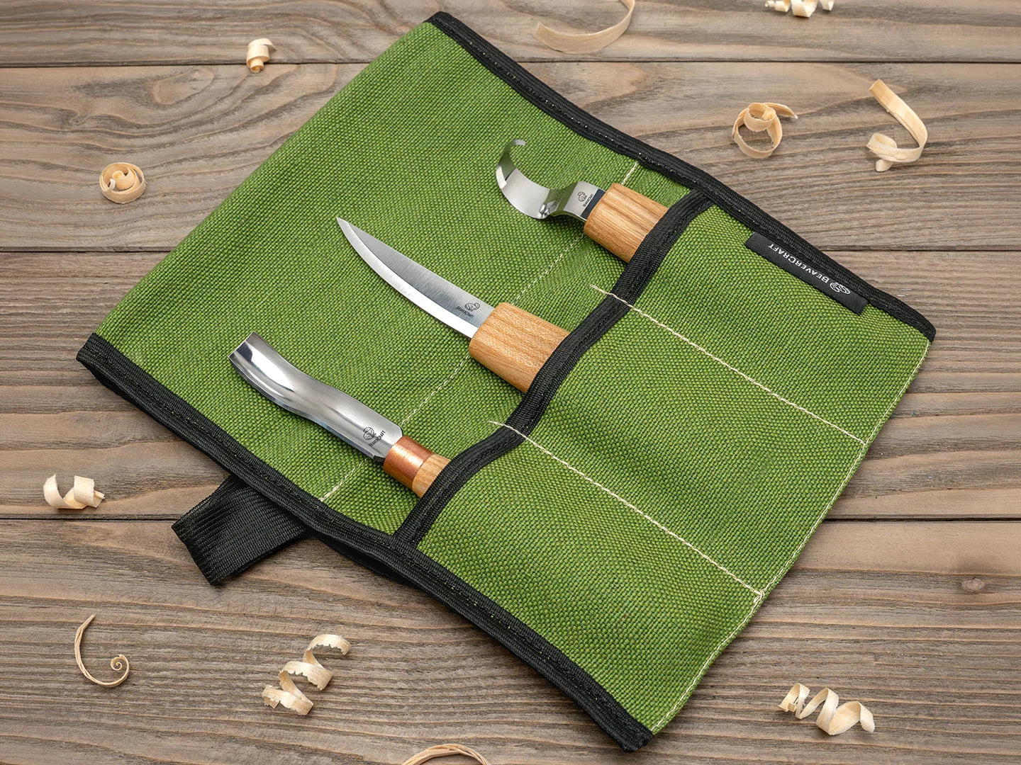 The tools are organized in a sturdy canvas roll-up pouch, keeping them protected, portable, and easy to access. It delivers professional-level performance in a convenient package. With the S14m, you have a high-quality carving kit that grows with your skills and handles a wide range of projects, making it a smart investment for any woodworker.